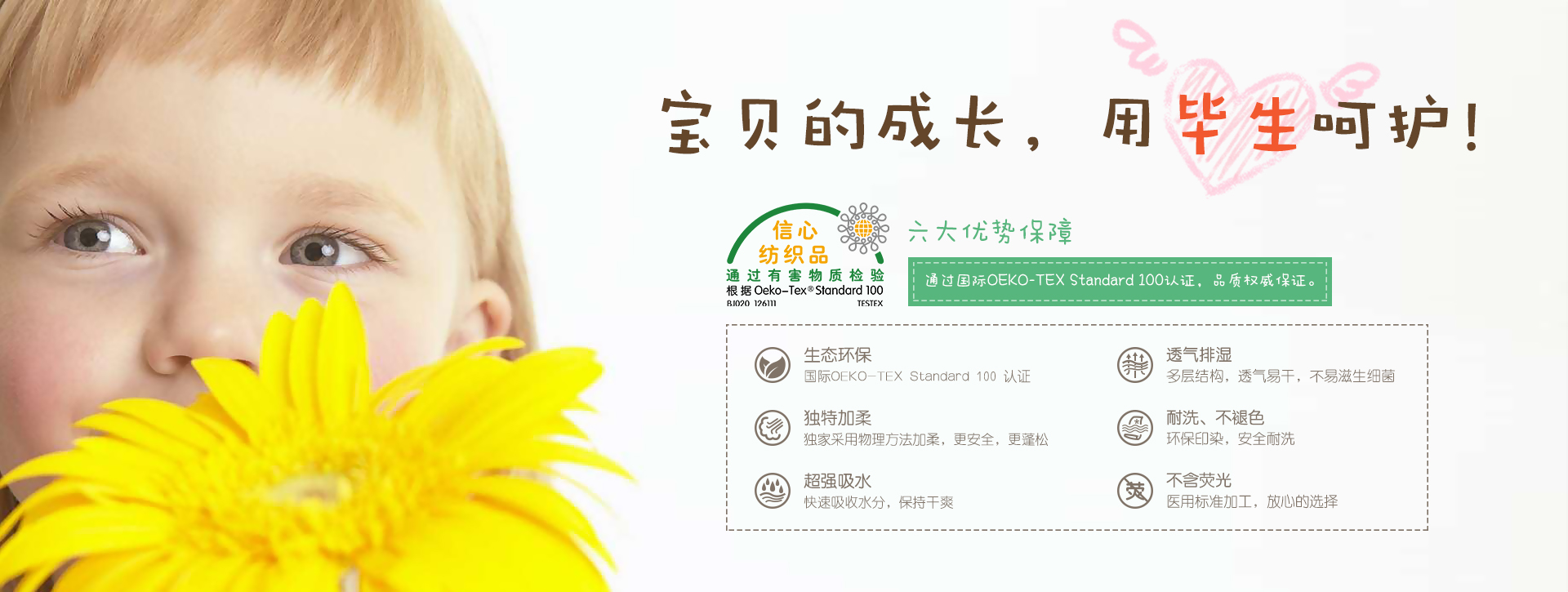 公司共投資6000多萬元人民幣,占地30畝,有260多名員工,有織布、織帶、漂煉、染色、縫紉、數(shù)碼印花六個車間,廠房建筑面積約16000平方米。主要生產(chǎn)嬰兒紡織品(OEKO-TEX, Standard100中的Ⅰ類產(chǎn)品)及繃帶(ISO13485中的Ⅰ類產(chǎn)品)。產(chǎn)品主要銷往德國、奧地利、法國、荷蘭、土耳其、日本、馬來西亞、菲律賓、新加坡、智利、安哥拉美國、加拿大及中國內(nèi)地,擁有環(huán)球影城、AEON等知名品牌的生產(chǎn)授權(quán),并通過了BV、TUV、SMTA等公司的社會責(zé)任驗廠;取得了AEON質(zhì)量管理認證和OEKO-TEX Standard100的證書(BJ020126111 TESTEX),是一批國際國內(nèi)知名品牌的代工企業(yè),如:西松屋、noukies、KUB、好孩子、英氏、巴拉巴拉等。